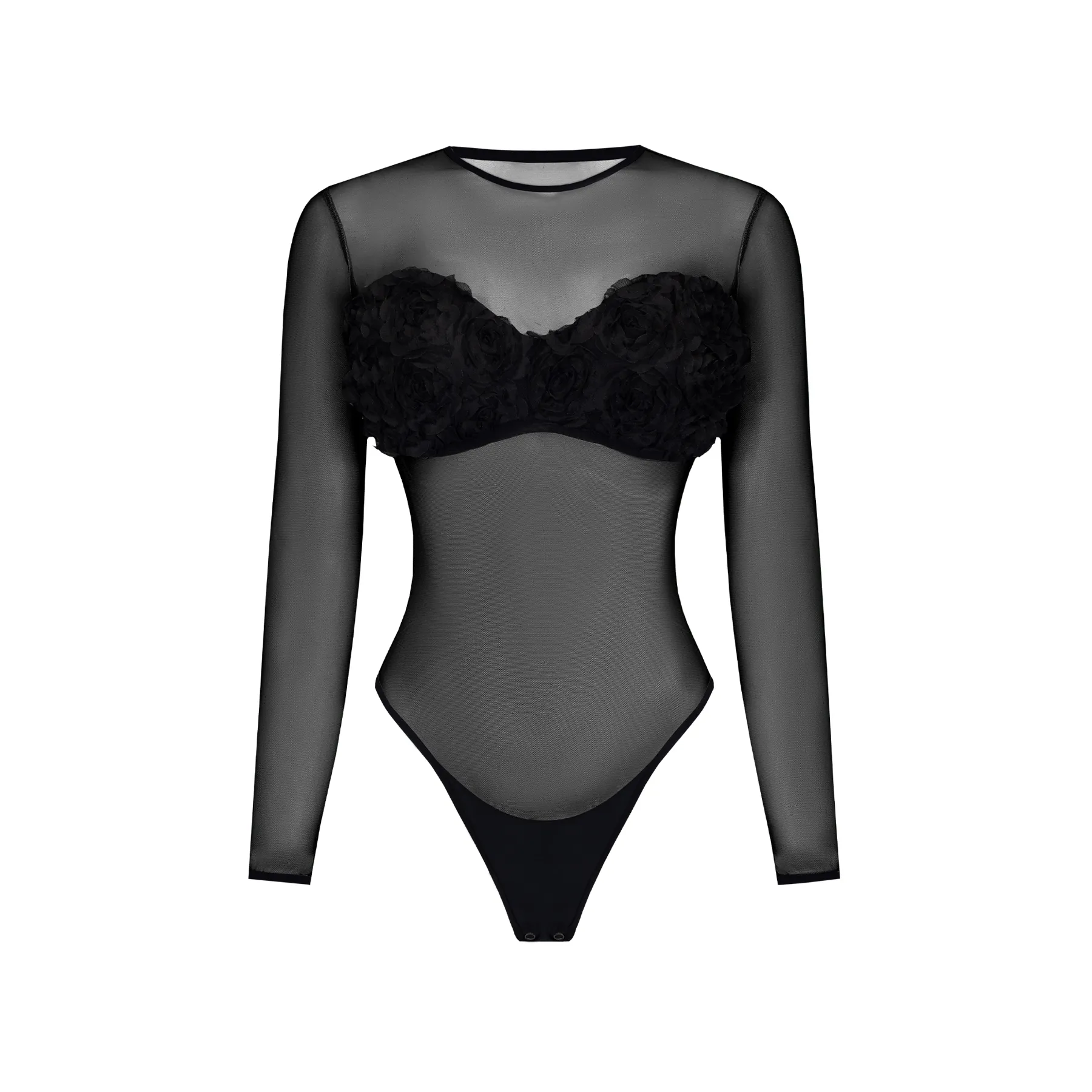 Боді Aroma Black виконані із сітки-стрейч. Троянди на сітці. Боді з монокаркас та чашкою із зістібною на кнопках.Склад: 81% поліамід, 19% еластан.Елегантне боді Aroma - виготовлене з ніжної сітки-стрейч. Вишуканості додають об'ємні троянди, розташовані на сітці в області бюста. Завдяки бюсту на монокаркасі забезпечується чудова підтримка. Зручна застібка на кнопках. Рекомендуємо ручне або машинне прання на делікатному режимі до 30°C.