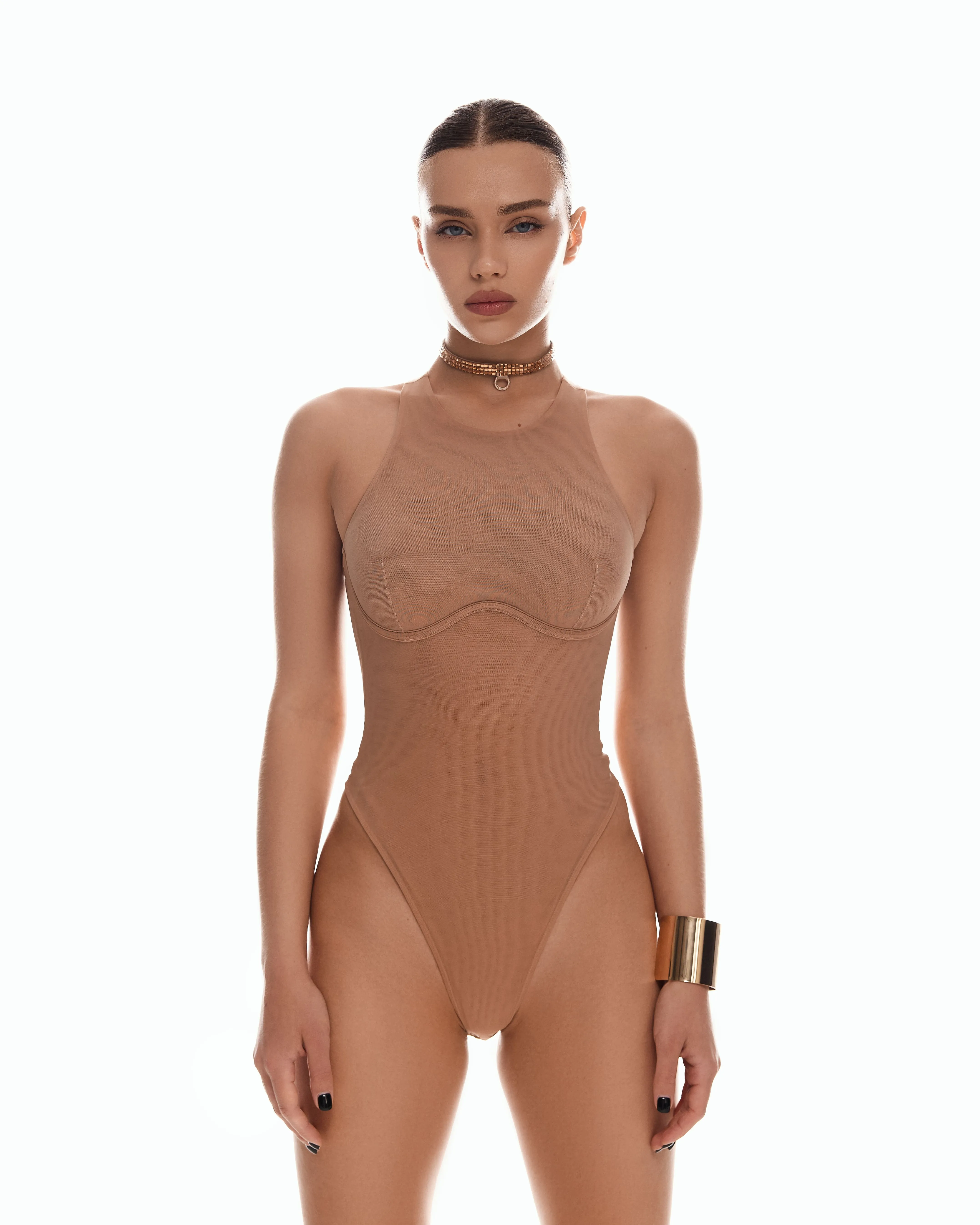Боді з напівпрозорої сітки Veil Бежевий