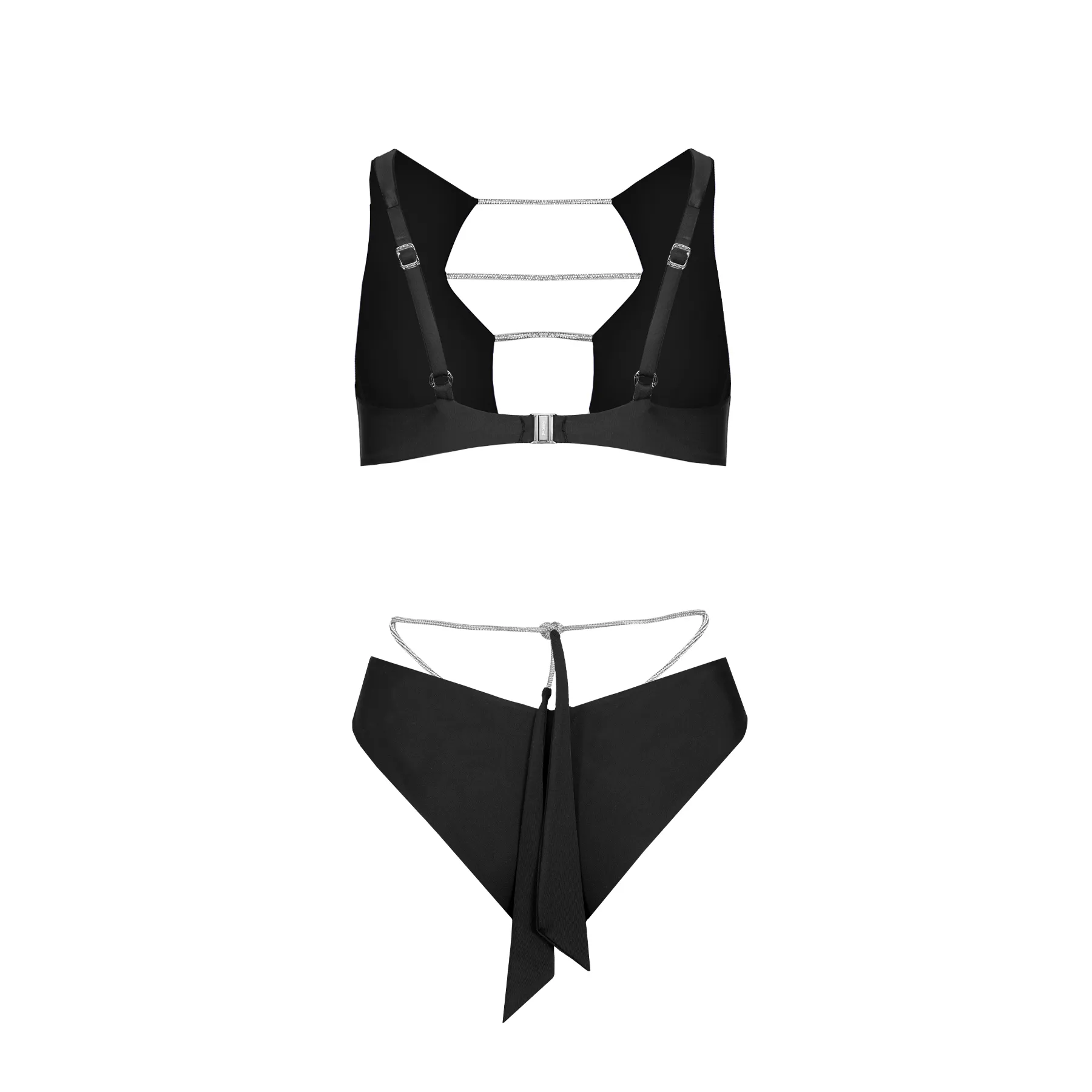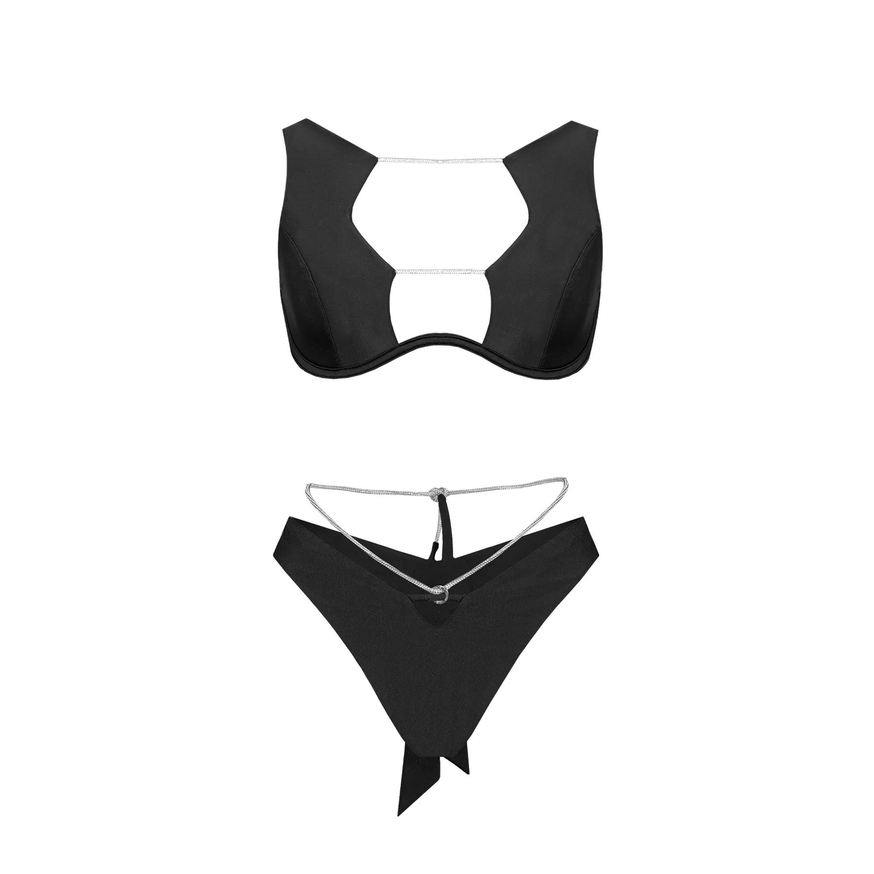 Плавки Daiquiri Black - трусики-бразильяна, виготовлені з еластичного біфлексу, підкреслять красу вашої фігури. Особливістю цієї моделі є знімна стрічка, оздоблена сяючими стразами, яка додає форму особливого шарму та елегантності. Ви легко можете знімати та надягати стрічку, змінюючи свій стиль залежно від настрою. Рекомендуємо ручне або машинне прання на делікатному режимі до 30°C.