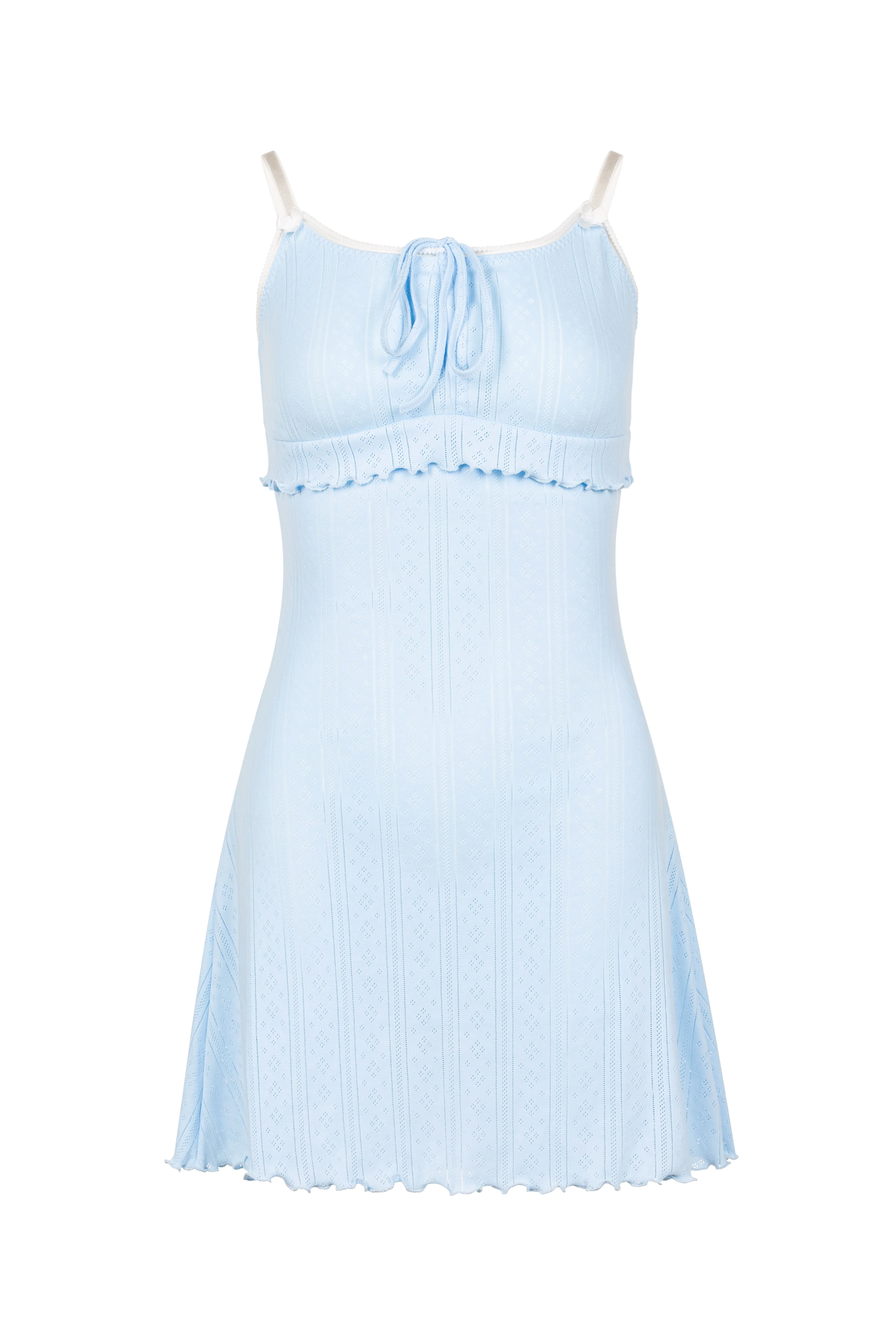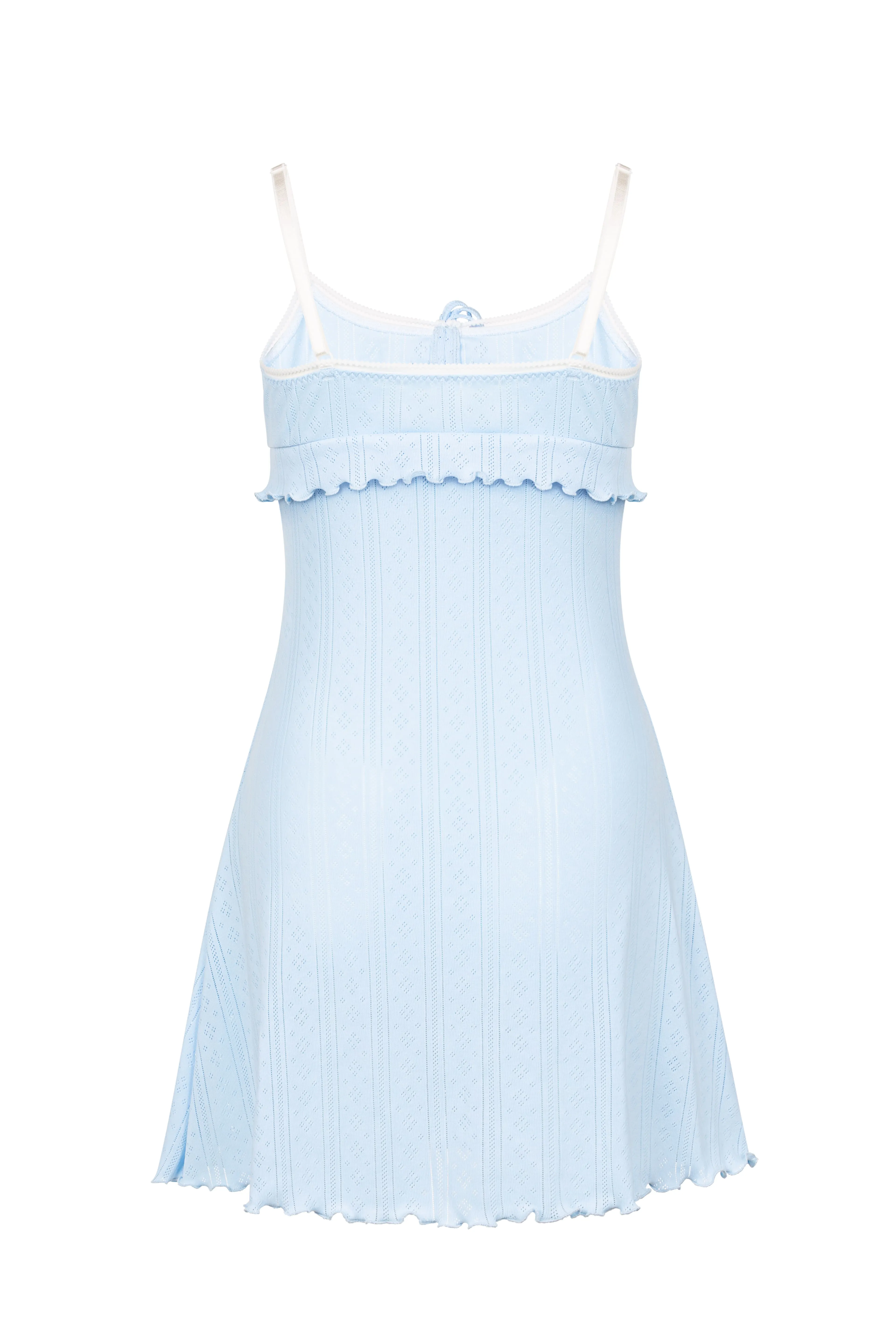 Сорочка Marshmallow Blue виготовлена із ажурного трикотажу. Легка та приємна до тіла. Бретелі на регуляторах. Склад 100% бавовна.